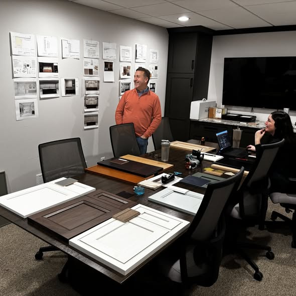 Meanwhile, back at our current showroom, owners Mike & Matt are having some “selection meetings” of their own with our designers, choosing the perfect combination of cabinetry, hardware, and tile for our upcoming displays. We can’t wait to see it all come together!